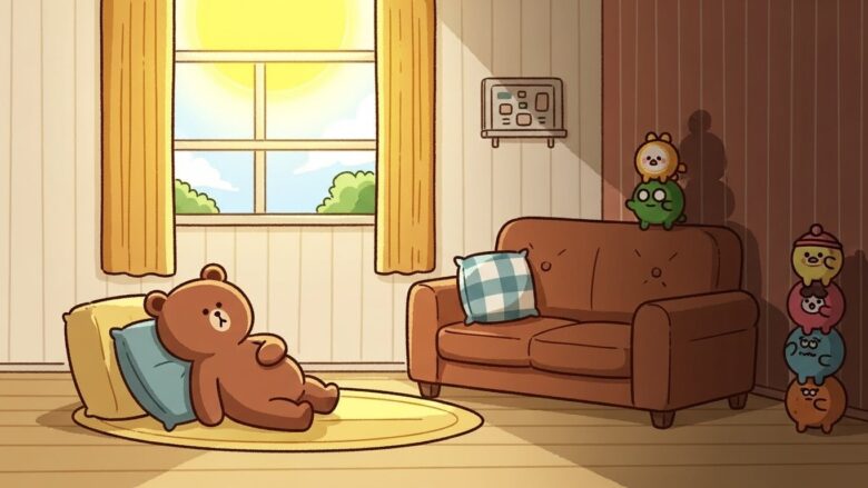 リラックマ(茶色・黄色)は、木製の家具や、温かみのある**「北欧風インテリア」**によく合います。