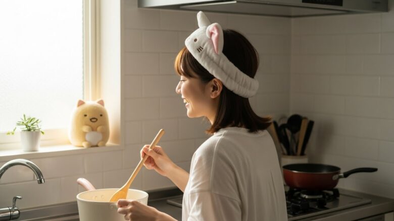 ヘアバンドを付けるという小さなアクションが、あなたの家事時間を、ただの労働から「自分を愛でる時間」へと昇華させてくれるんです。
