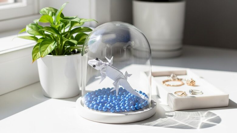 折り紙でトカゲを折ることに慣れてきたら、ぜひ「本物のグッズ」と一緒に飾ってみてください。