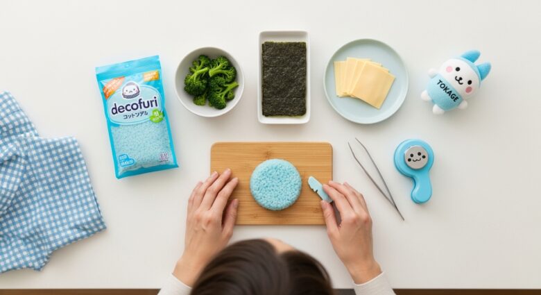 | デコふり(水色) | ごはんを、あのとかげの、優しい、優しいブルーに染め上げる、魔法の粉!これさえあれば、もう8割完成したも同然です! | 100円ショップ、スーパー |